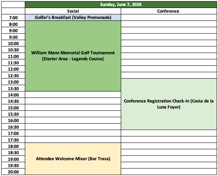 | 7:00 – 8:00am | Committee Breakfast | Las Palmas 1 and 2 |