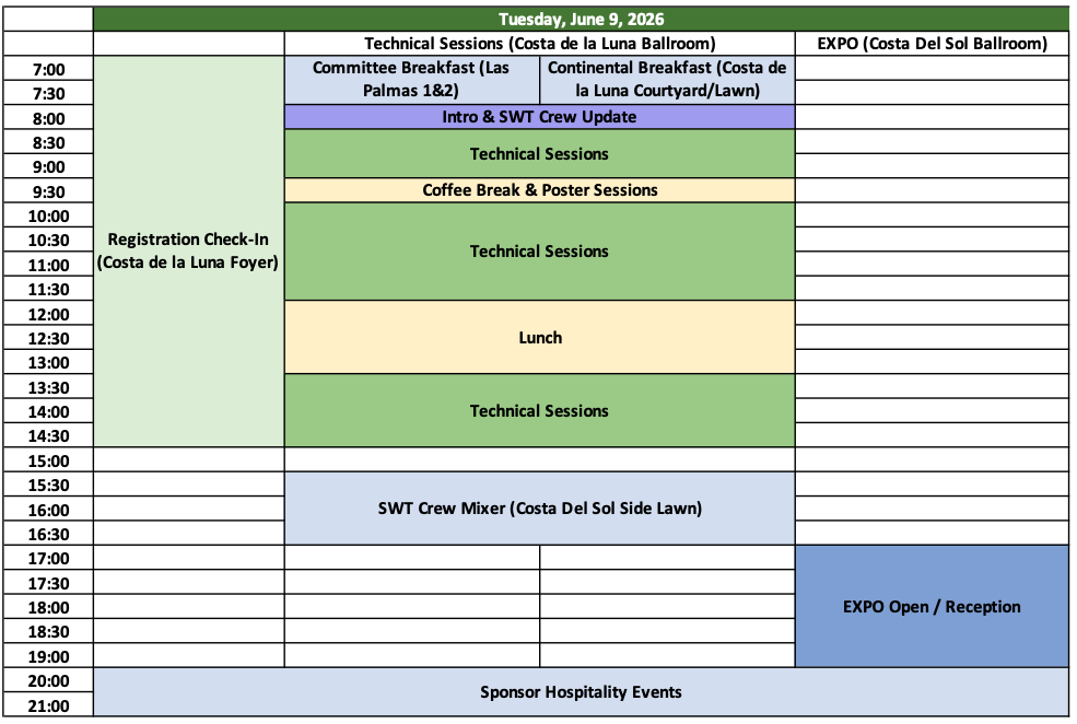 | 8:00 – 8:30am | Update on SWT Crew Initiative and Mentoring Program Karen ARMENDARIZ (Celadon Systems – USA) | Costa de la Luna Ballroom |